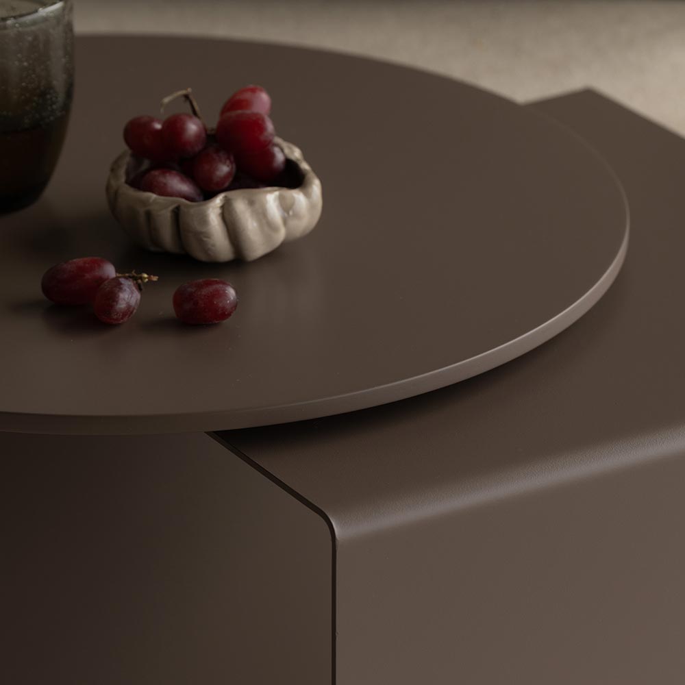 Acabado: Superficie: En primer lugar aplicamos una capa de compuesto de poliuretano que confiere una dureza adicional inicial a la pieza, esta capa tiene gran poder de relleno y cubrición y además tapa los poros de la madera para que la tonalidad de acabado sea uniforme. Sobre esta capa, lacamos con un ligante acrílico mate aportando dureza y flexibilidad que junto con la pasta de color, le proporcionará la tonalidad final elegida a la pieza. Estructura: La estructura metálica está protegida con una resina epoxídica que se aplica conjuntamente con la pigmentación deseada en la propia masa, aportando un acabado uniforme, durable y resistente a rayaduras y roces del día a día.